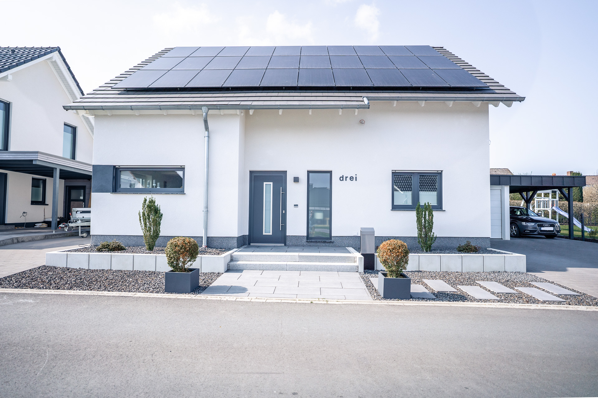 Eine Doppelgarage und drei Stellplätze runden das Angebot ab.